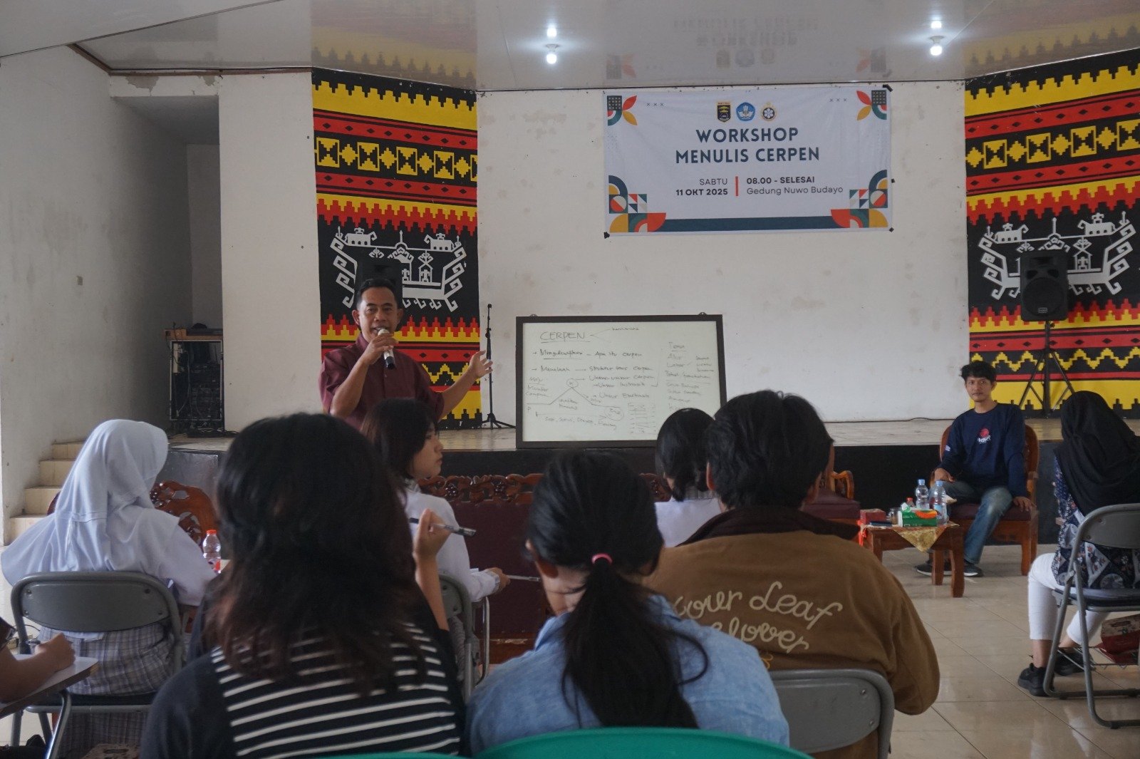 Metro, 11 Oktober 2025 — Dewan Kesenian Metro melakukan Pembinaan Sastra untuk Pelajar SMA di kota Metro dengan Workshop Menulis Cerpen. Kegiatan diikuti 50 pelajar dan dilaksanakan pada Sabtu, 11 Oktober 2025, di Gedung Nuwo Budayo Metro.