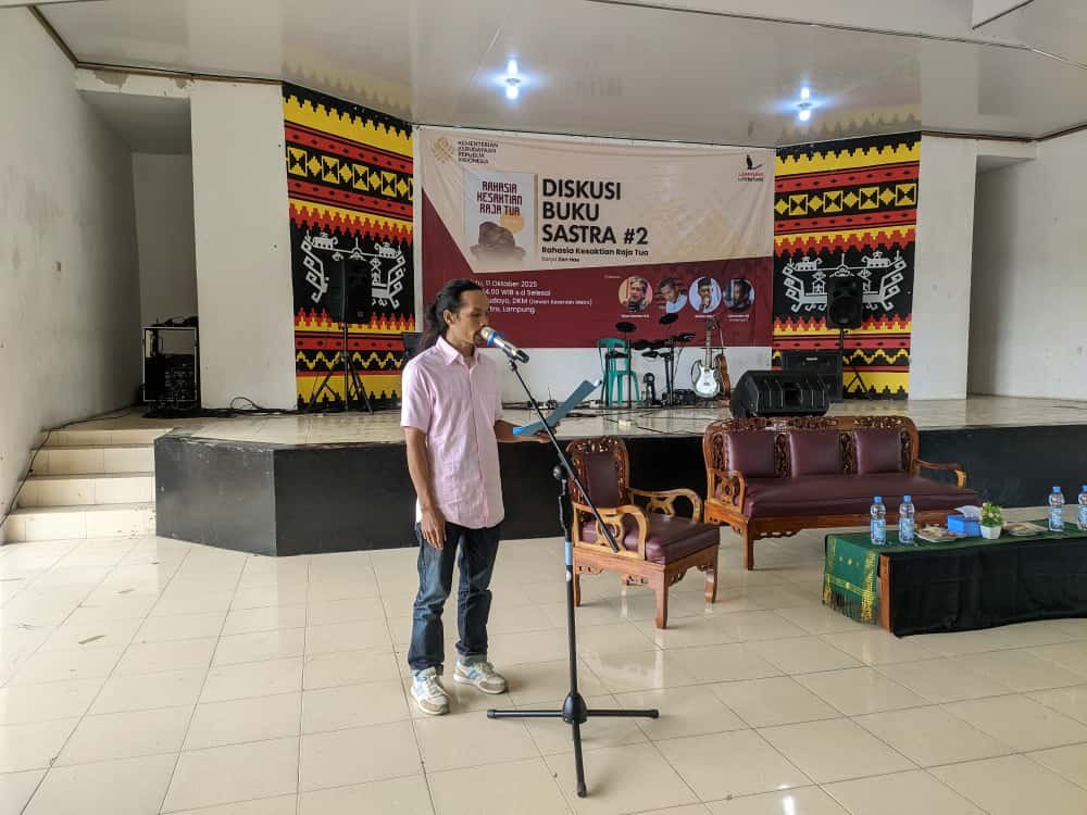 Metro, 11 Oktober 2025 — Lampung Literature laksanakan Tur Sastra kedua di Kota Metro dengan menggelar Diskusi Buku Sastra “Rahasia Kesaktian Raja Tua” karya Zen Hae. Kegiatan yang bekerja sama dengan Dewan Kesenian Metro (DKM) ini digelar di Gedung Nuwo Budayo Metro pada Sabtu, 11 Oktober 2025 waktu setempat.