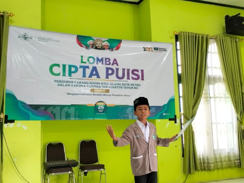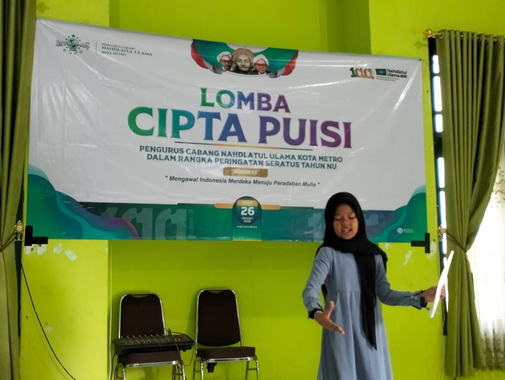 Kota Metro — Pengurus Cabang Nahdlatul Ulama (PCNU) Kota Metro menyelenggarakan Lomba Menulis Cerpen serta Cipta dan Baca Puisi Pelajar dalam rangka memperingati Seratus Tahun Nahdlatul Ulama (1926–2026). Kegiatan ini mengusung tema “Mengawal Indonesia Merdeka Menuju Peradaban Mulia” dan dilaksanakan pada Senin, 26 Juni 2026, bertempat di Gedung PCNU Kota Metro.