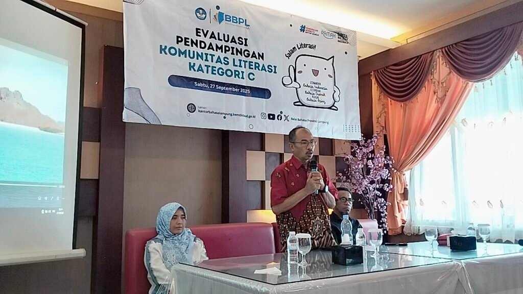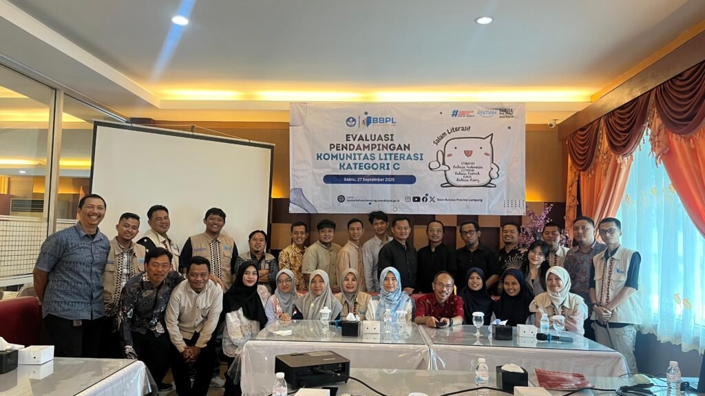 [Bandar Lampung, 27 September 2025] Balai Bahasa Provinsi Lampung menggelar kegiatan Evaluasi Pendampingan Komunitas Literasi Kategori C pada Sabtu, 27 September 2025, di Begadang Resto Convention Hall, Bandar Lampung.